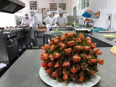 1. Проект „Да популяризираме кетъринга“ с партньори от Латвия и Италия. Проектът предвижда екипи от по 6 ученици и двама учители от страните-партньори да подготвят традиционни за своята страна кетърингови изделия и да обменят опит в приготвянето на кетърингови изделия от другите страни. Целта е учениците да бъдат мотивирани да изучават специалност „Кетъринг“. Проведохме първата среща по проекта, в която ние бяхме домакини. Срещата премина много професионално и всички участници останаха изключително доволни. Работната програма включваше представяне на училището, срещи с наши партньори – работодатели в София. В хотел „Балкан“, „Радисън“ и „Сенс“ учениците се запознаха как се организират кетърингови събития и как се приготвят кетърингови изделия. Всички ученици от трите страни участваха в подготовката на кулинарна изложба по случай 50-годишния юбилей на ПГОТ.
